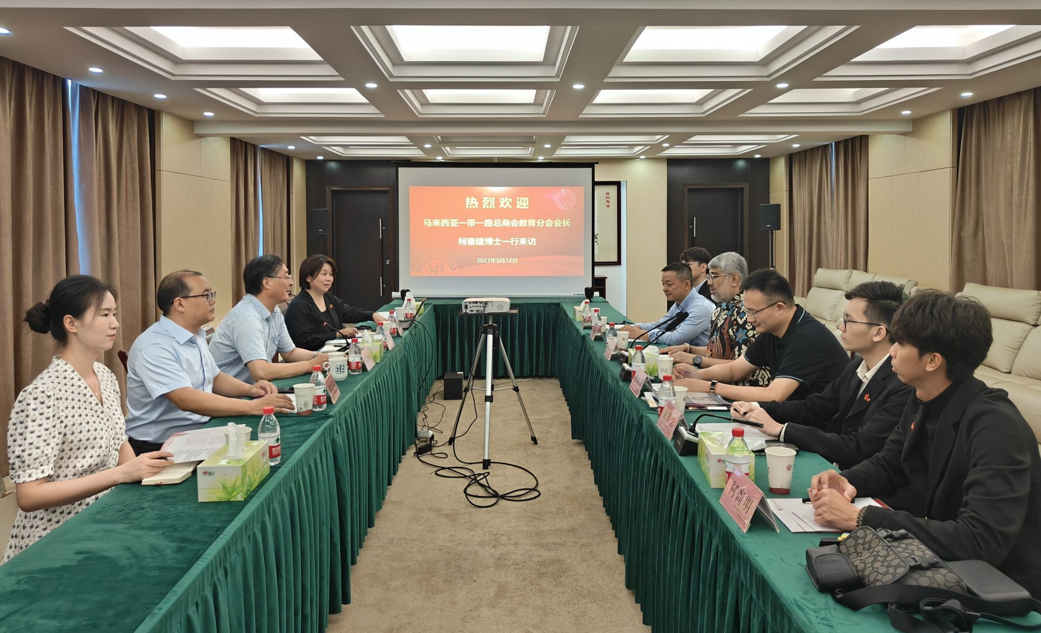 9月12日,马来西亚“一带一路”总商会教育分会会长Mr. Kenneth Quah一行7人来访我校。党委副书记邓海龙、党政办公室外事工作办公室主任林娟,国际教育交流中心主任吉利梅、教务处副处长曹留峰和来宾就与马方开展合作办学、师生学历提升、“中文+技能”教学中心等项目进行深入商讨。