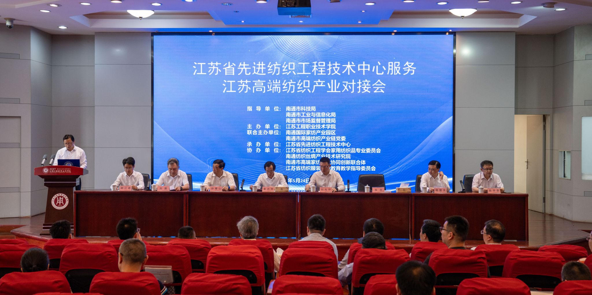 5月25日上午,我校在致知楼报告厅举办江苏省先进纺织工程技术中心服务江苏高端纺织产业对接会。中国家用纺织品行业协会副会长刘兆祥,东华大学高性能纤维与制品教育部重点实验室主任、教授王华平,南通市科技局副局长孙青山,南通市市场监督管理局党组成员、市知识产权局专职副局长蒋爱龙,江苏南通国际家纺产业园区党工委委员、管委会常务副主任刘鹏,南通市工业和信息化局四级调研员陈宇荣等出席对接会。校党委书记秦志林,校党委副书记、校长张忠,副校长郭江峰出席会议,会议由张忠主持。