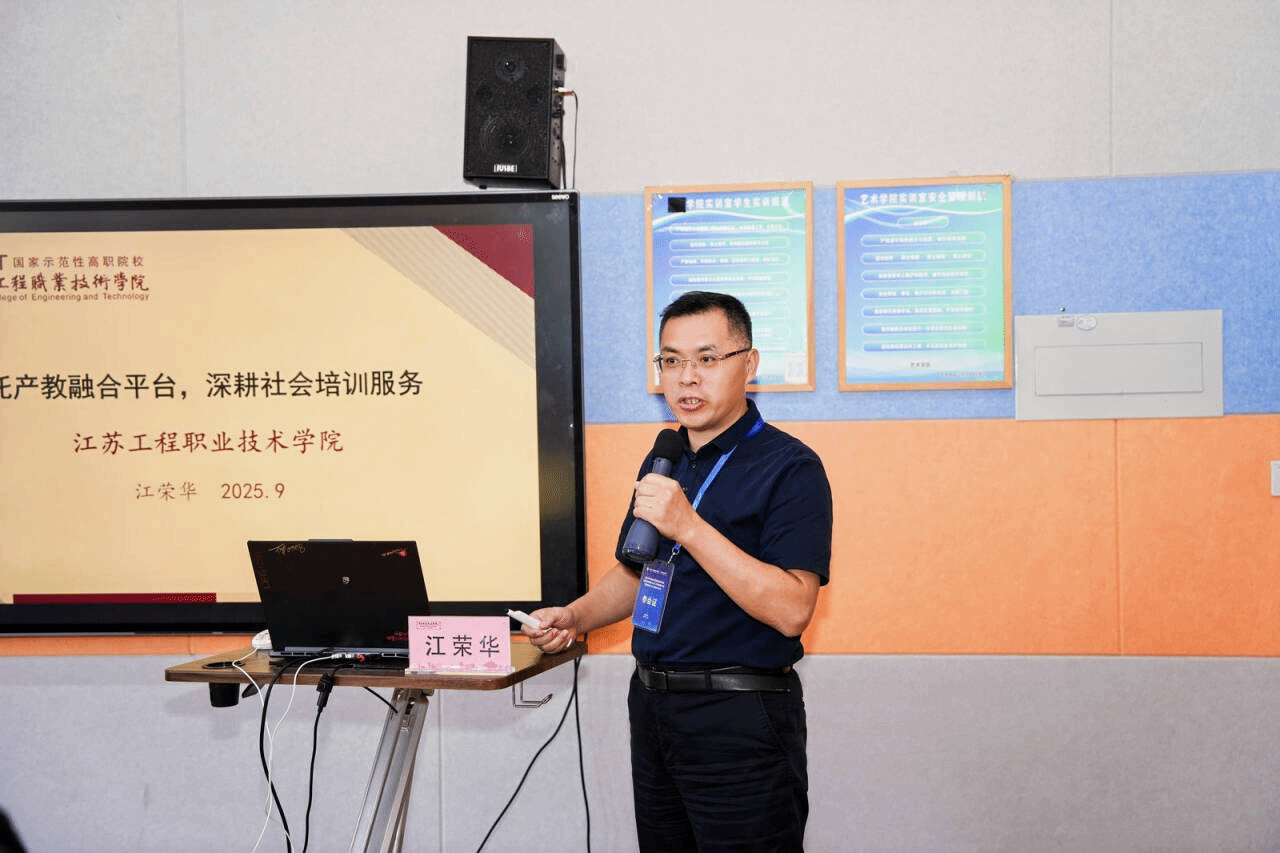 江荣华在继续教育分会场作了题为《依托产教融合平台,深耕社会培训服务》的专题报告;洪杰在高职高专教育分会场作了题为《发扬胡杨精神,东西协作共融——共筑新疆纺织服装职业教育新高地》的报告。