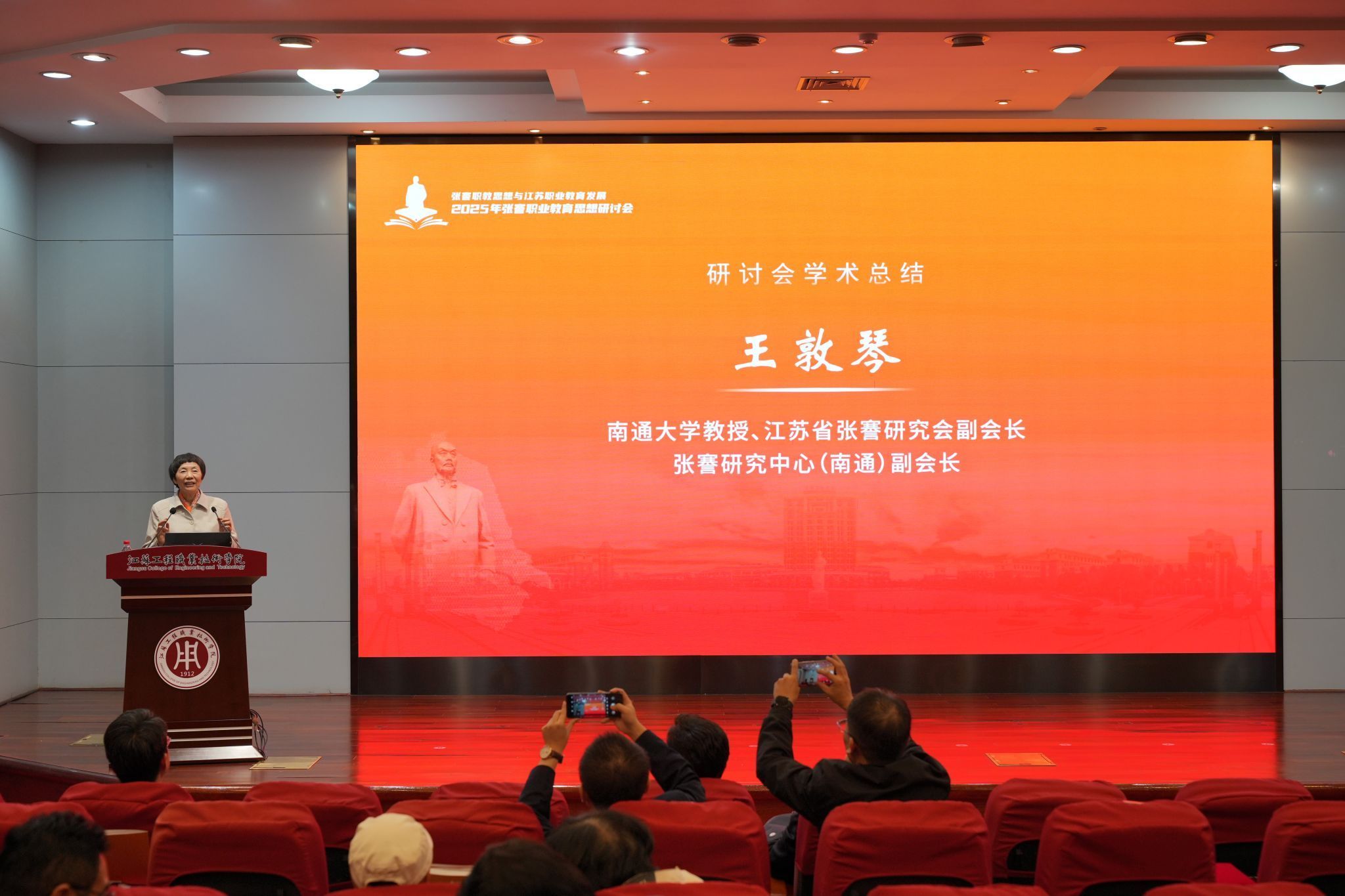 在学术交流环节,6位与会专家学者围绕张謇职业教育思想的时代内涵与当代价值等方面主题展开研讨,现场观点纷呈、交流深入,学术氛围浓厚。南通大学教授、江苏省张謇研究会副会长、张謇研究中心(南通)副会长王敦琴作大会学术总结。她指出,本次研讨会视野开阔、研讨深入,学者们从多角度提出诸多新见解,有力推动了张謇职教思想研究迈向新高度,彰显了较高的学术水平与会议成效。闭幕式上举行了大会优秀论文颁奖仪式。